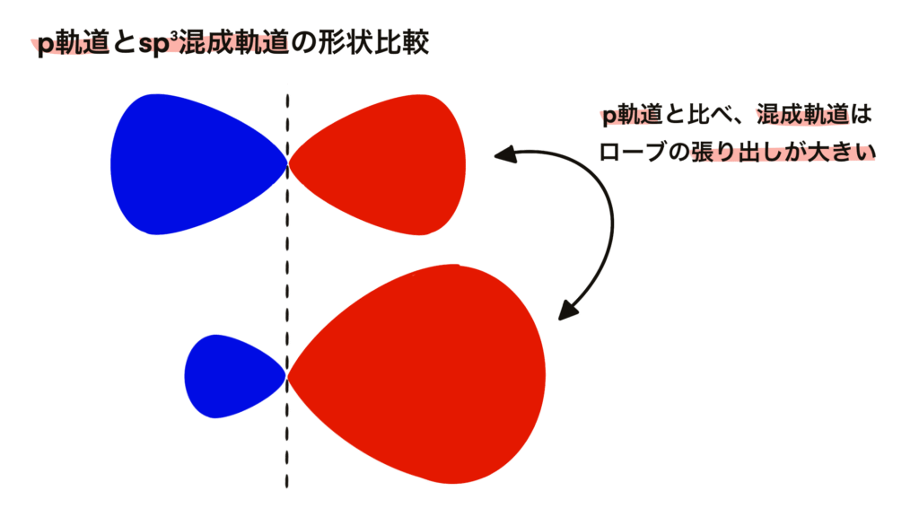 これにより、より強固な結合が形成できるため混成軌道を形成するのです。